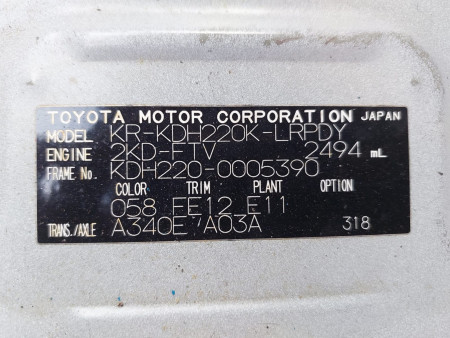 | Chassis No. | KDH220-0005390 |