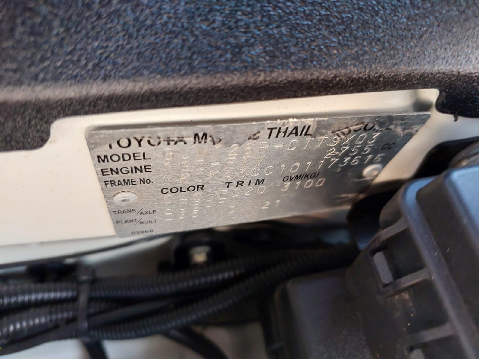 | Chassis No. | MR0KA3CC101173616 |