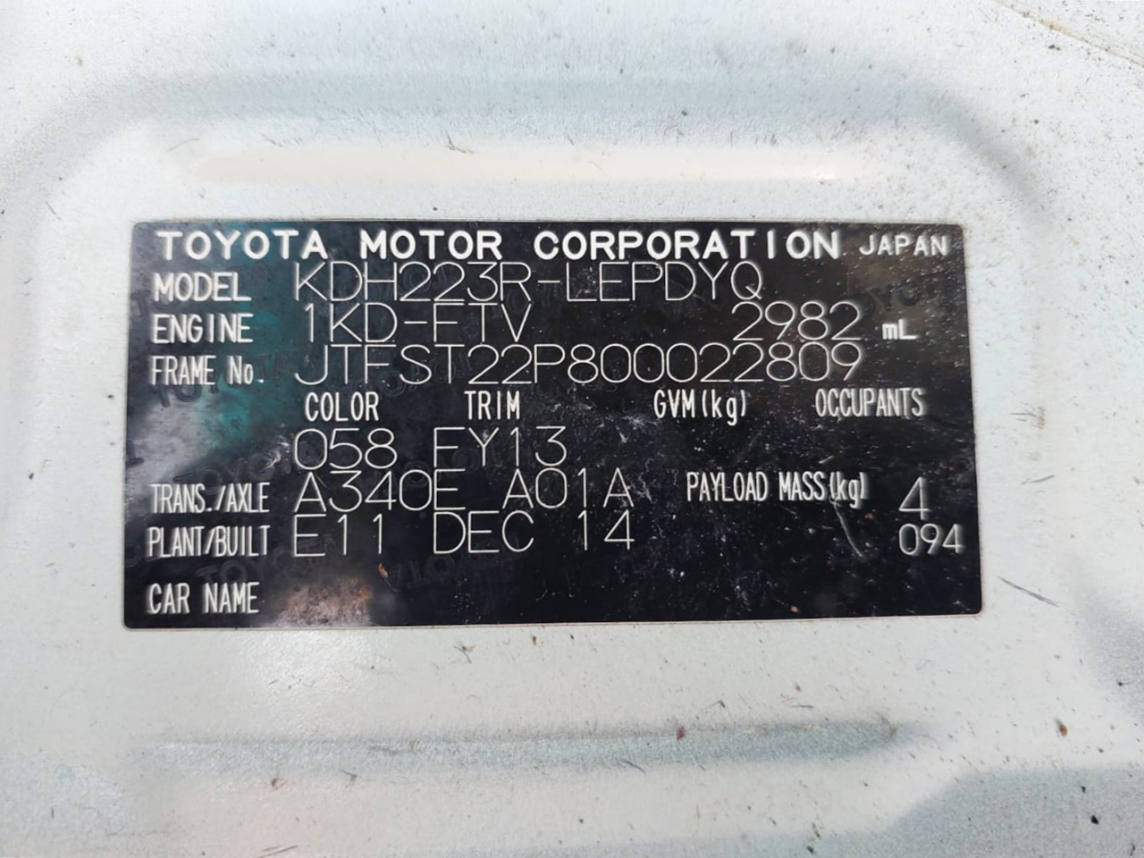 | Chassis No. | JTFST22P800022809 |
