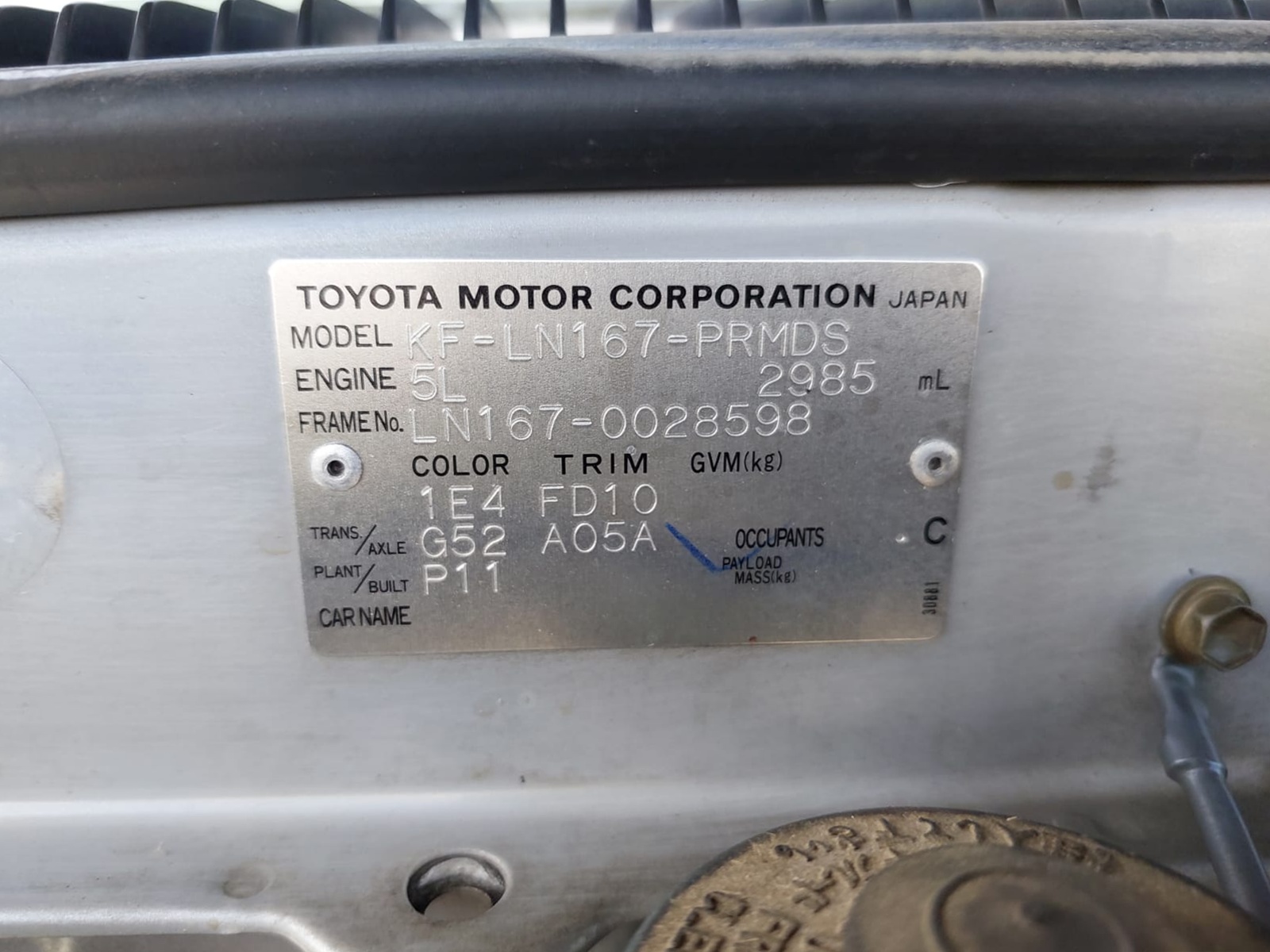 | Chassis No. | LN167-0028598 |