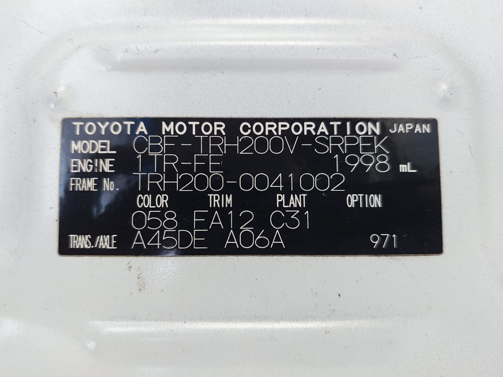 | Chassis No. | TRH200-0041002 |