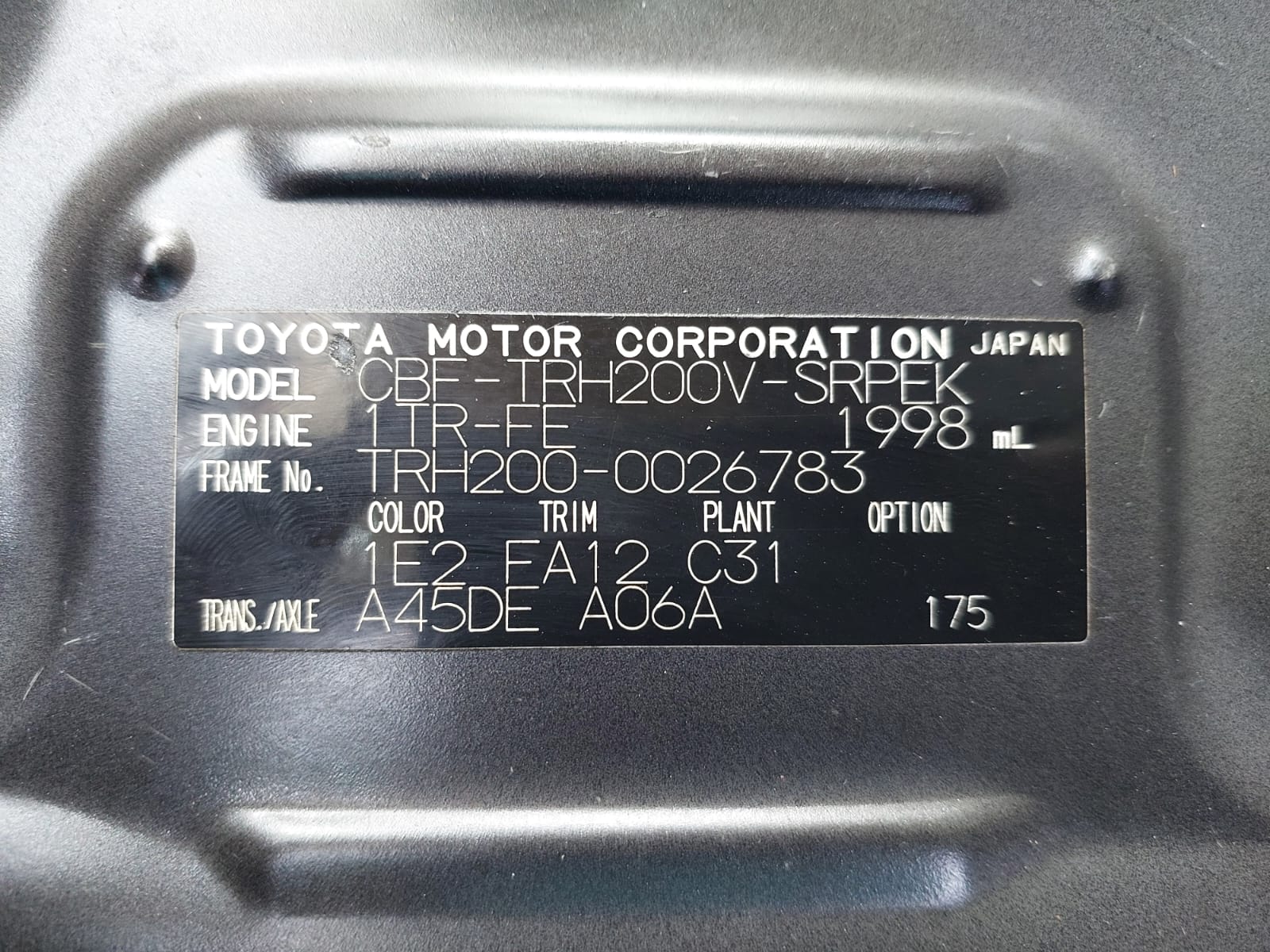 | Chassis No. | TRH200-0026783 |