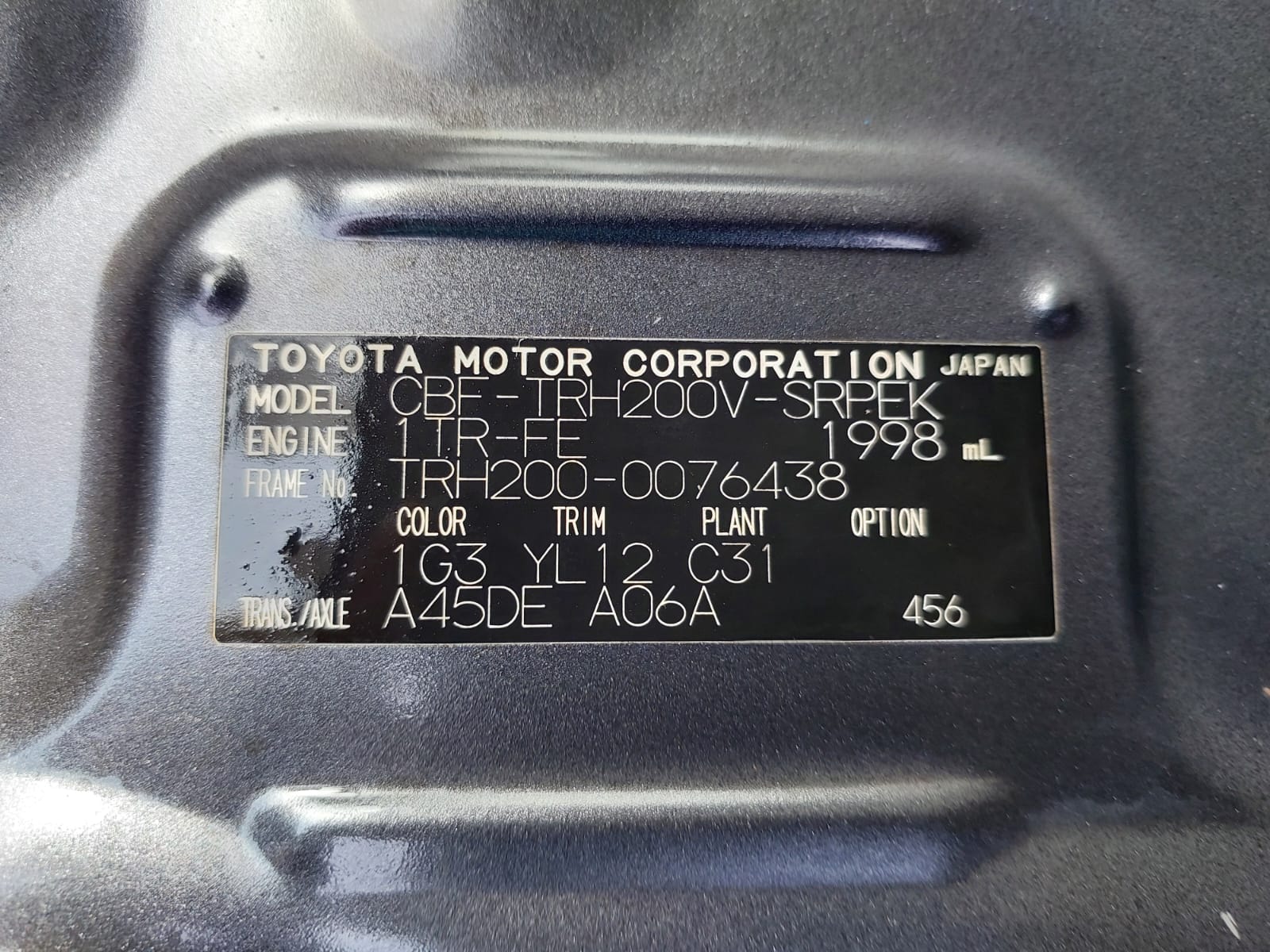 | Chassis No. | TRH200-0076438 |
