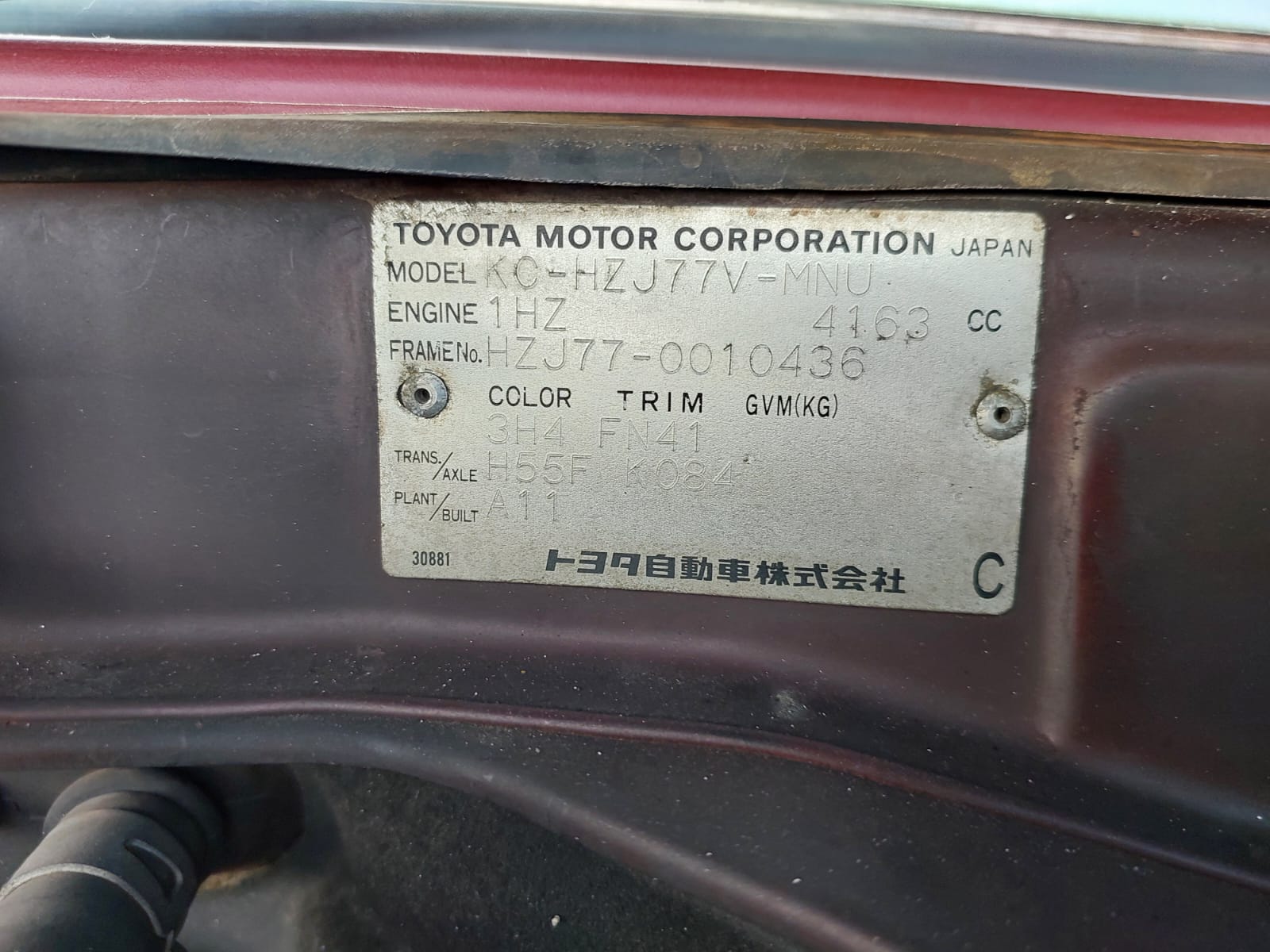 | Chassis No. | HZJ77-0010436 |