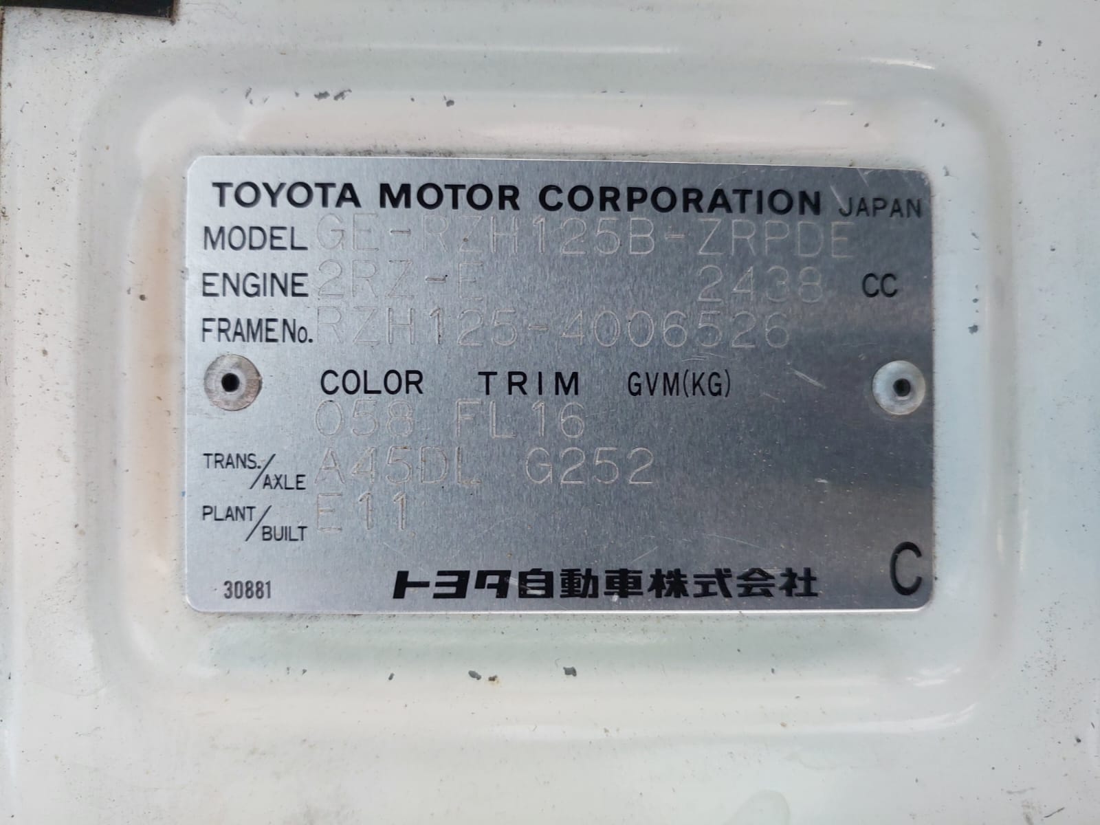 | Chassis No. | RZH125-4006526 |