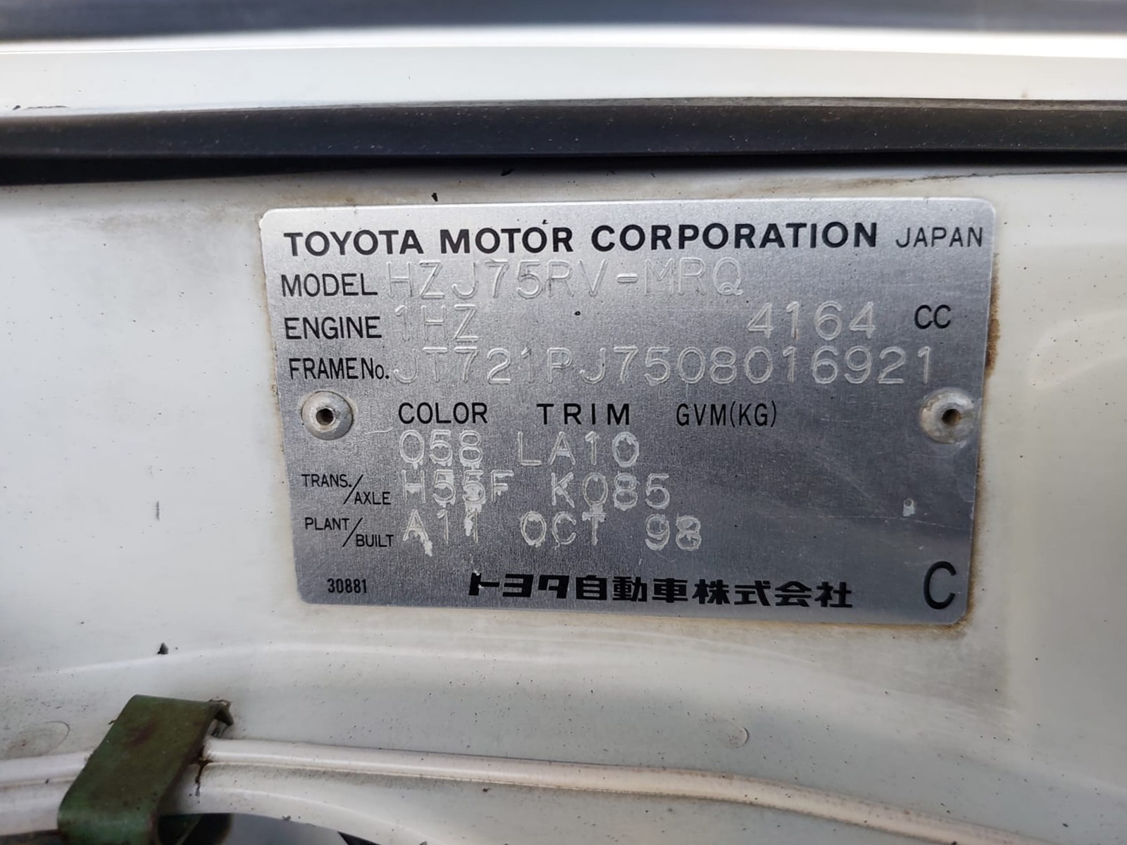 | Chassis No. | JT721PJ7508016921 |